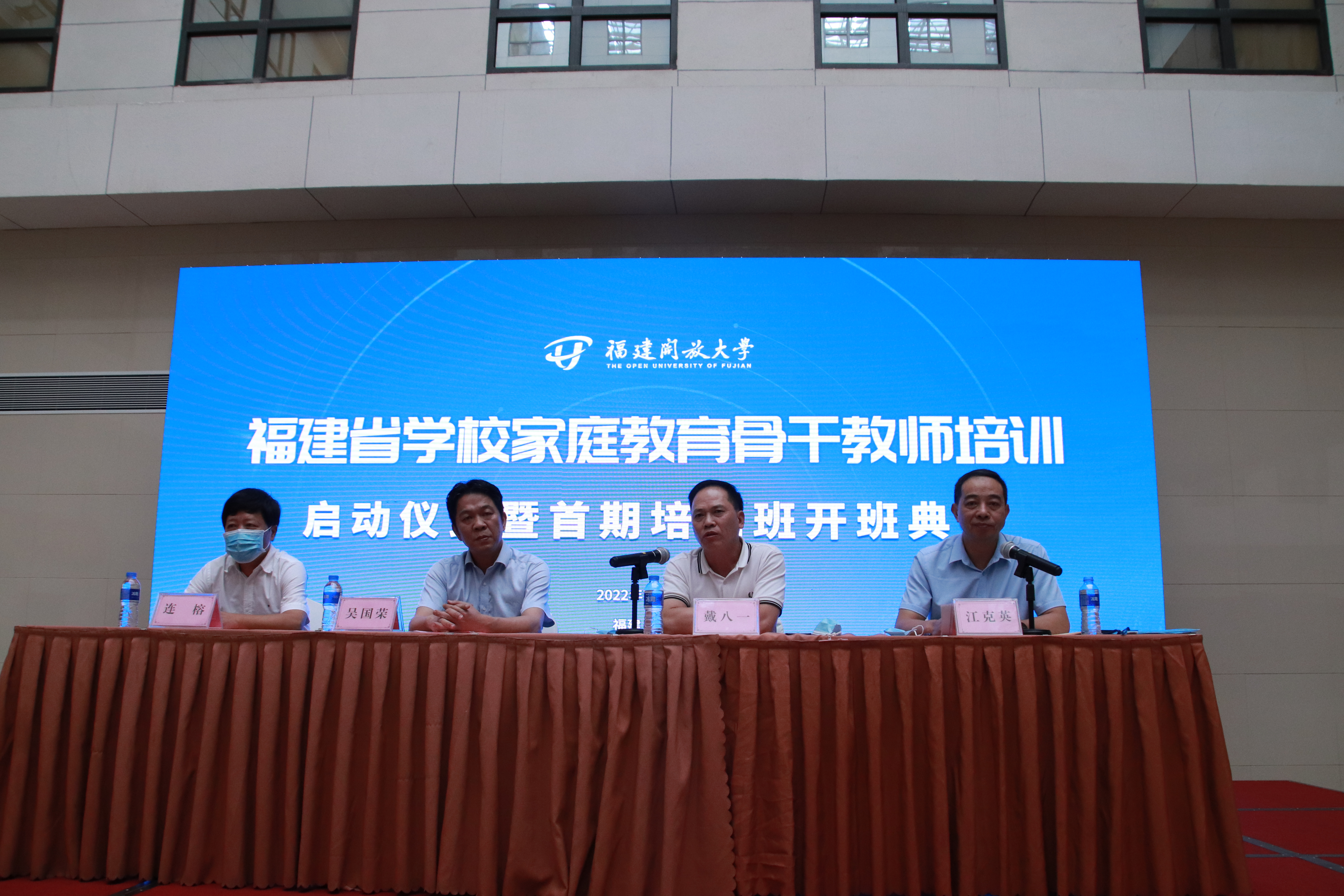 7月20日上午,福建省學(xué)校家庭教育骨干教師培訓(xùn)啟動(dòng)儀式暨首期培訓(xùn)班開(kāi)班儀式在廈門隆重舉行。培訓(xùn)由福建省教育廳主辦,福建開(kāi)放大學(xué)承辦,福建省終身教育服務(wù)中心協(xié)辦。福建開(kāi)放大學(xué)黨委副書記、校長(zhǎng)吳國(guó)榮,福建省教育廳思想政治工作處二級(jí)調(diào)研員戴八一,福建師范大學(xué)心理學(xué)院二級(jí)教授、博導(dǎo)連榕出席開(kāi)班式,來(lái)自全省各地市的家庭教育骨干教師113名參加了開(kāi)班儀式。福建開(kāi)放大學(xué)培訓(xùn)學(xué)院院長(zhǎng)江克英主持開(kāi)班儀式。