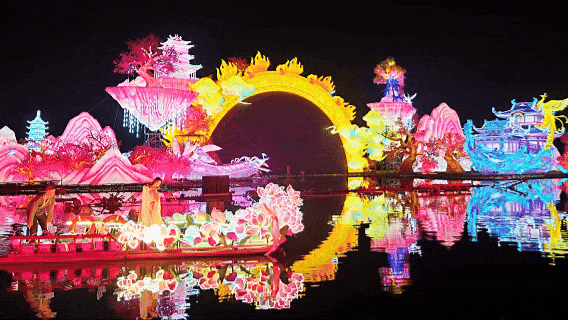 在園博苑主展島,以生肖“馬”為文化符號,45個品種13.6萬株郁金香打造出“瑞馬迎春”“風(fēng)車牧場”等特色景觀,荷蘭風(fēng)情與廈門濱海特色巧妙融合,層層疊疊的花海像被打翻的調(diào)色盤。夜幕降臨,園博苑的浪漫又別有一番風(fēng)情。作為目前省內(nèi)規(guī)模最大的夜游光影盛會,“歡樂光域·廈門園博苑燈會”通過9大主題板塊30多組大型燈組點(diǎn)亮夜色,光影交織間勾勒出閩南獨(dú)特神韻,讓游客在繁花與燈火間感受新春的熱鬧氛圍。