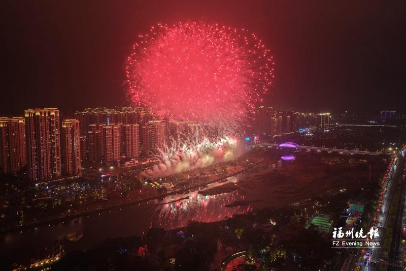 當(dāng)無(wú)人機(jī)表演進(jìn)入尾聲,震撼的焰火秀隨即登場(chǎng)。隨著一聲聲轟鳴,焰火如金瀑傾瀉,如花海盛放,將夜空染成流光溢彩的畫布。整場(chǎng)焰火秀圍繞“福起福清、山海福清、港城興榮、福滿融城”四個(gè)篇章展開(kāi),通過(guò)焰火的藝術(shù)語(yǔ)言講述福清人敢闖敢拼、薪火相傳的故事,彰顯奮斗精神與家國(guó)情懷。