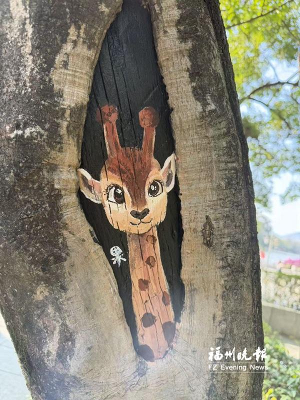一個樹洞里冒出了一只“長頸鹿”“。補(bǔ)丁”坐標(biāo):西湖公園