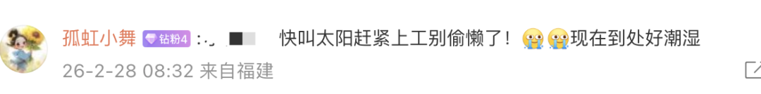 春節(jié)假期剛結(jié)束,福州人的復(fù)工日常就被連綿春雨“續(xù)費”成功。烘干機(jī)全線開啟、衣物難干成為共識,網(wǎng)友們紛紛在線求晴天。