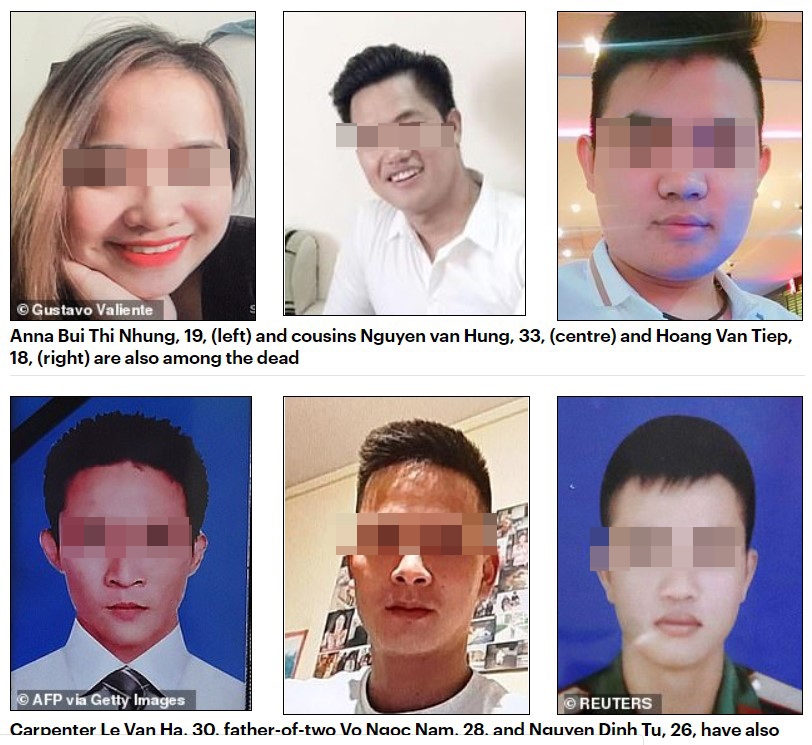 英國埃塞克斯郡警方11月8日公布了埃塞克斯郡集裝箱貨車案39名遇難者的身份信息。他們均為越南公民,年齡大多在20歲至40歲之間,遇難者中包括多名未成年人,最年輕的僅15歲。目前,英國警方正在與越南交涉遺體移交事宜。
